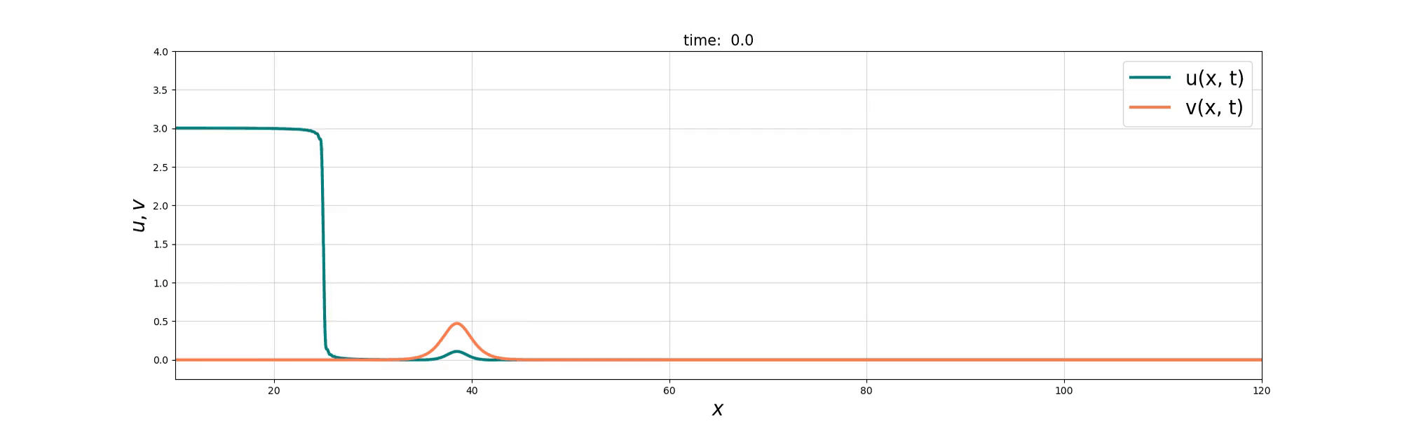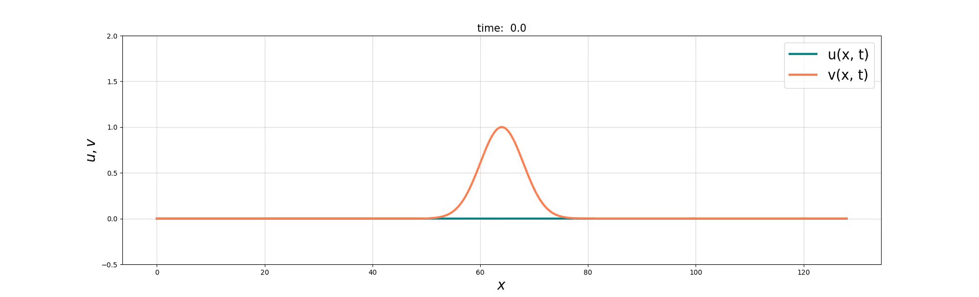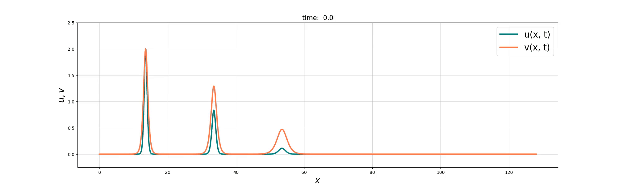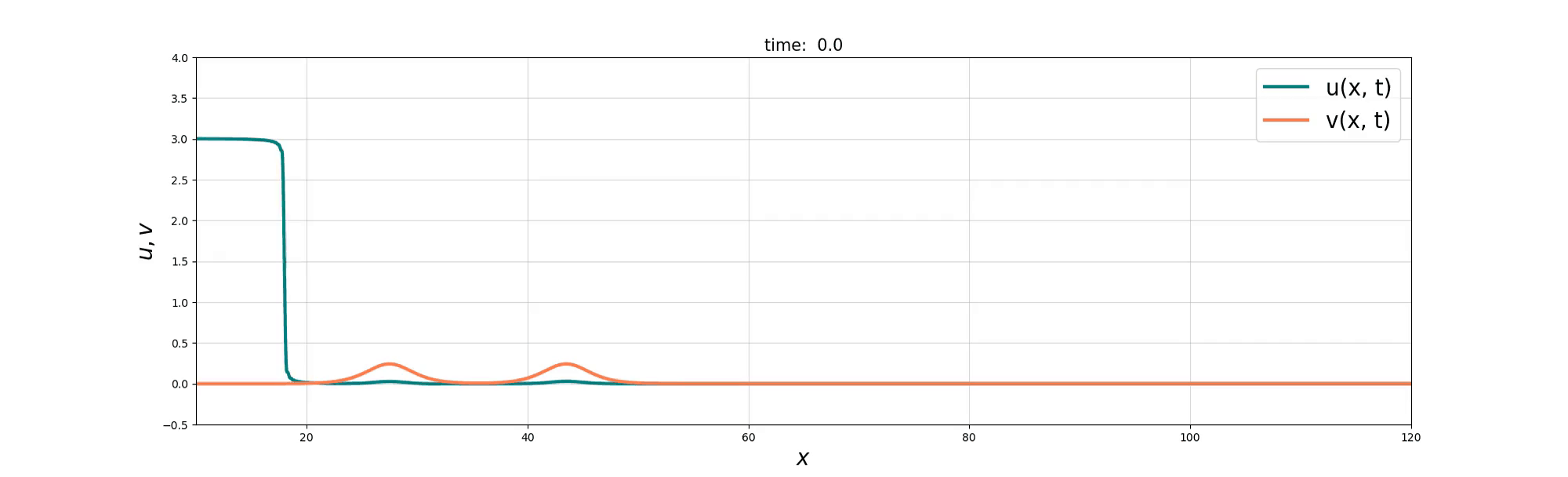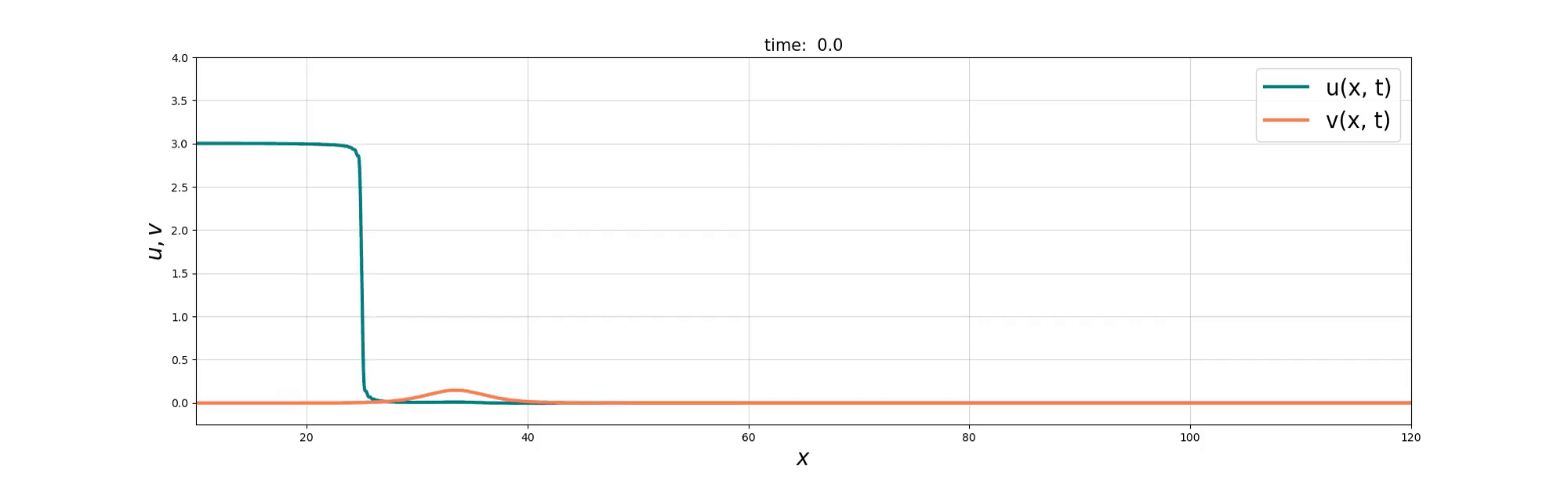 $\mathrm{Burgers}: \quad u_t+3 u u_x \quad=-v \partial_x\left(3 v^2+\gamma v_{x x}\right)$,